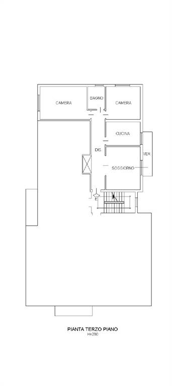La casa è composta da tre camere (tutte ad uso singola), cucina, bagno, disimpegno e veranda. Garage utile per biciclette, moto e monopattini.