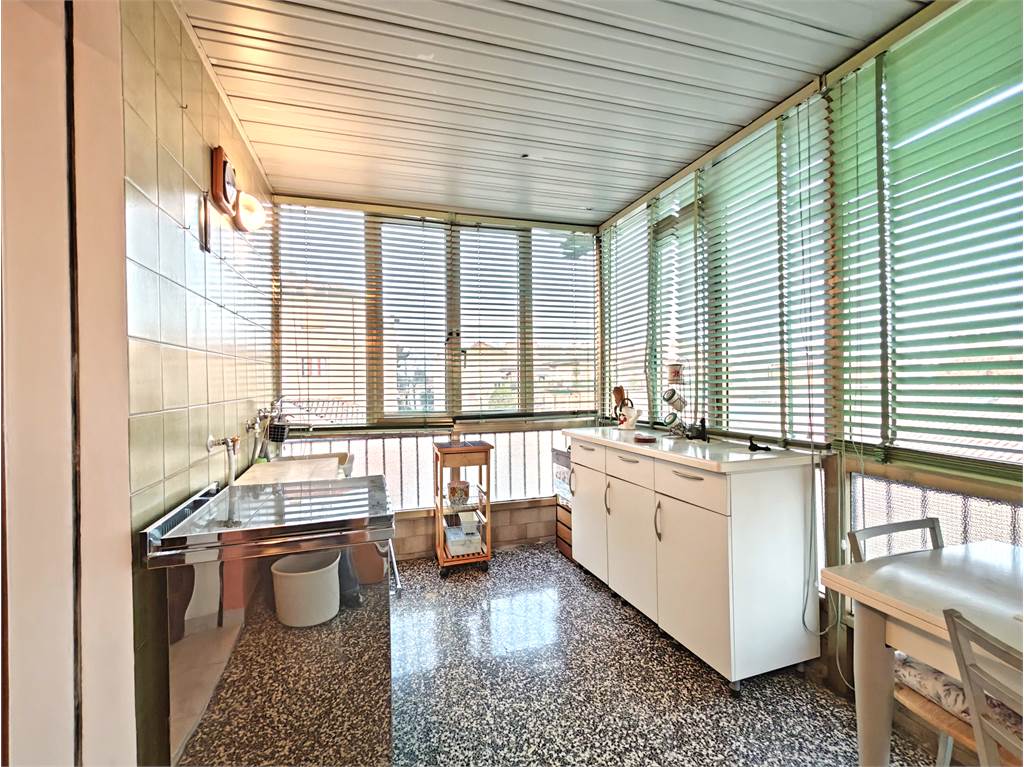 Mestre, Via Passo Falzarego (laterale di Via San Donà), vendesi appartamento al 3° ed ultimo piano (senza ascensore) di un tranquillo e decoroso condominio di sole 8 unità. L'appartamento di 80 mq calpestabili, ha come vero punto di forza uan zona esterna di ben 30 mq funzionalmente suddivisa tra una ampia zona verandata utilizzata come estensione della zona giorno e fruibile tutto l'anno, ed una terrazza aperta ideale per momenti conviviali estivi o come angolo verde. L'appartamento è composto da ingresso, soggiorno, cucinotto, bagno, ampia camera matrimoniale ed una seconda stanza attualmente arredata a salotto ma tranquillamente utilizzabile come seconda camera matrimoniale.